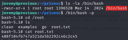 jeremy@previous:~/privesc$ ls -la /bin/bash
